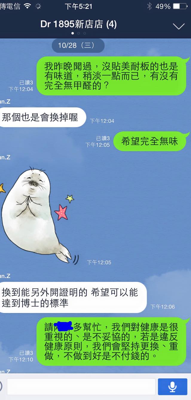 例如,前幾天我路過,發現新來的「優質木心板」有濃濃的甲醛味,我可是叮嚀了無數次,絕對不要有甲醛味!