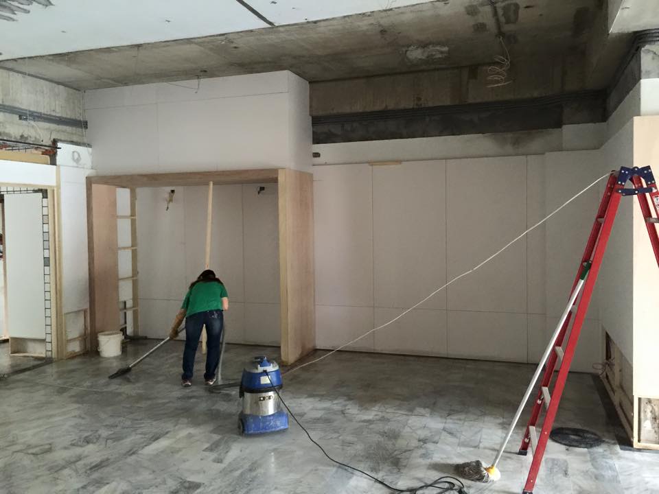另外,我叮嚀很多次,拆除後、施工前,一定要用漂白水和清潔劑刷洗地板,把以前小兒科診所留下來的病菌徹底清除。結果,他們沒做,被我發現了,所以,我再次堅持,木工就暫停下來,今天刷洗地板。