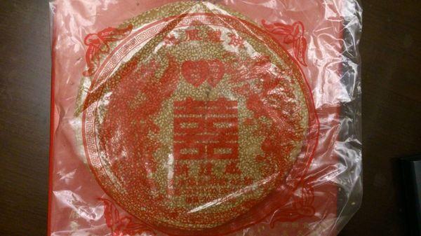 昨天吃喜酒,帶回一個沒有氫化油、沒有防腐劑的喜餅,真是難得呀!