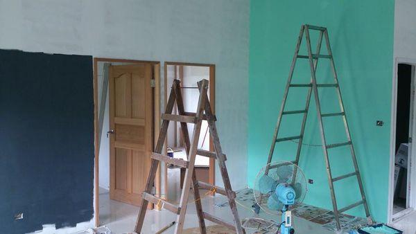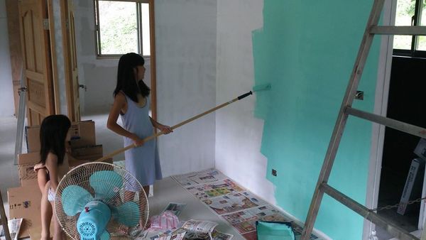 今早在百忙之中,帶小孩到香格里拉的<好來屋>刷油漆。