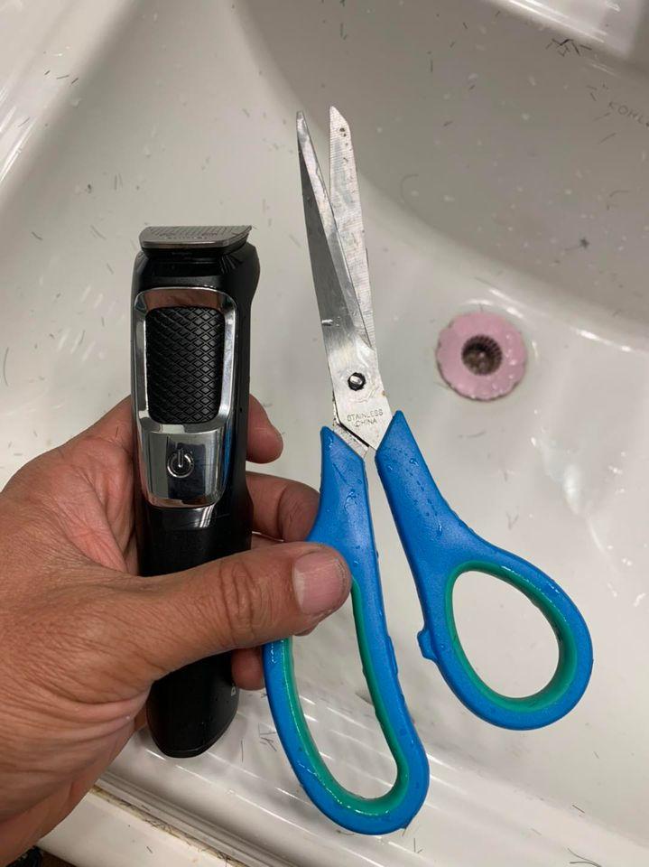 我先警告各位男士,自己剪頭髮的難度頗高,千萬不要輕易嘗試。我是因為大小助理不在身邊,又不想去給老美剪頭髮(以前有過不好印象,又貴、又慢、又難看)。