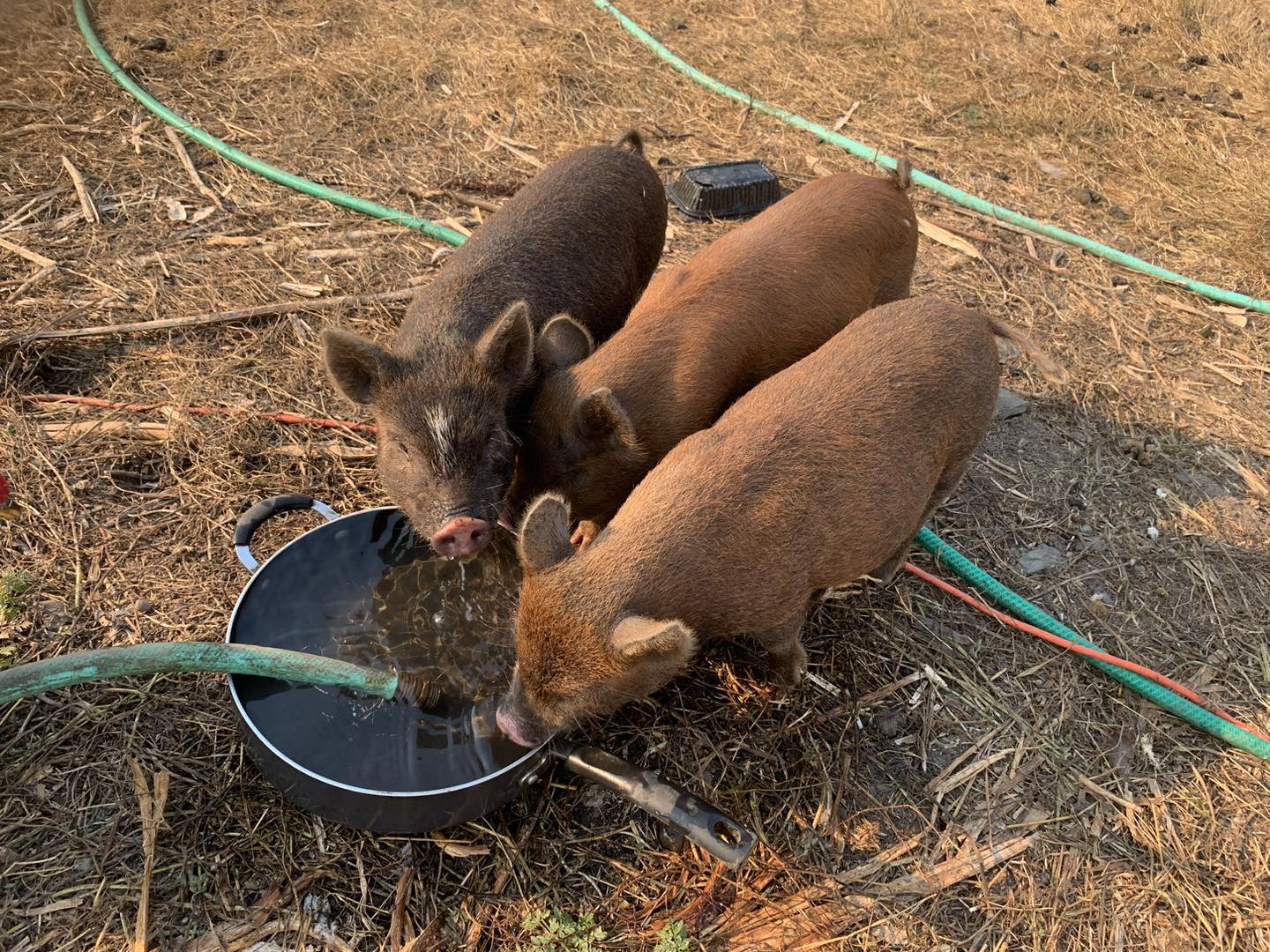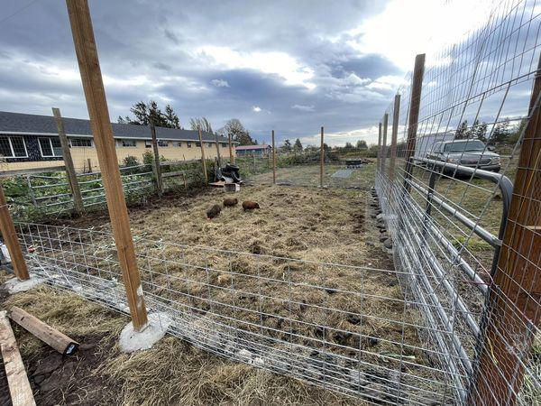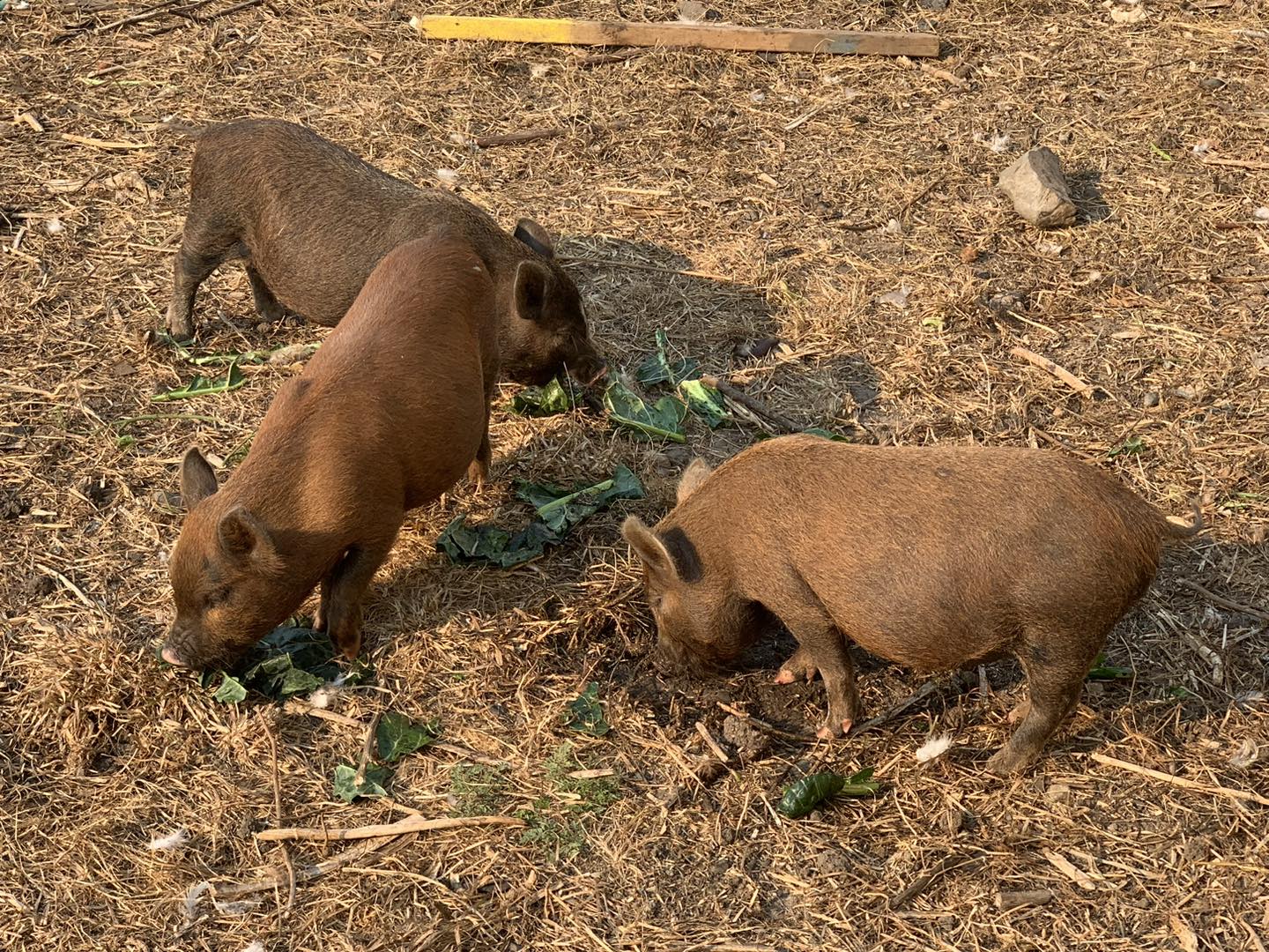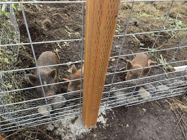 我順便提一下,我一個月前買了三隻小豬來養,目的是要吃後院1.5英畝的雜草,因為這個品種的豬是吃素的,很愛吃草。為什麼不養羊呢?因為山羊很會搗亂。
