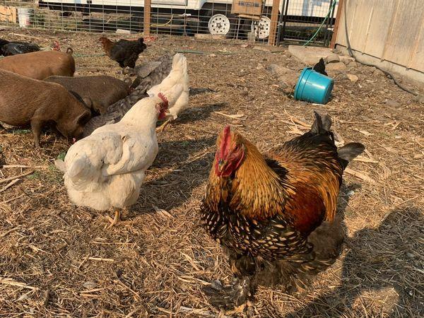 雞的智商比豬實在差太遠了!雞飛出籬笆後,常會找不到回家的方法。其實就照原來的方式飛回去就好了,但大部分的雞都只會乾著急、窮緊張,跑來跑去。我有小雞就這樣自己鑽進鐵網裡,卡在裡面,你若不去救牠,牠就永遠卡在裡面。