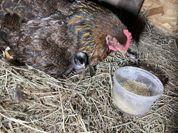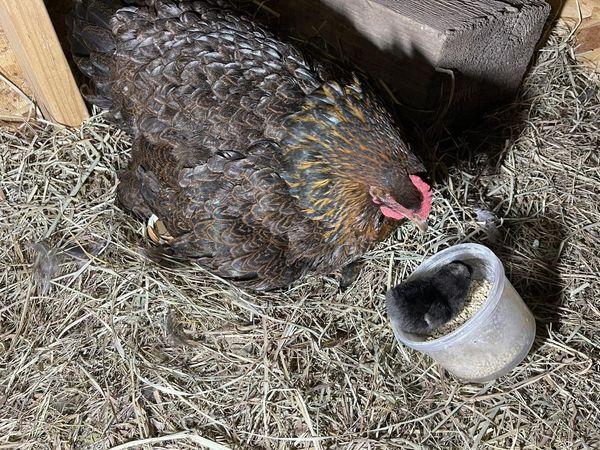 這隻老母雞是我最呵護的雞,牠非常偉大,非常認真負責,每天不分晝夜,隨時都在孵蛋。萬一肚子餓,會短暫出去覓食,在雞蛋變涼之前,就會趕回來,繼續孵蛋。