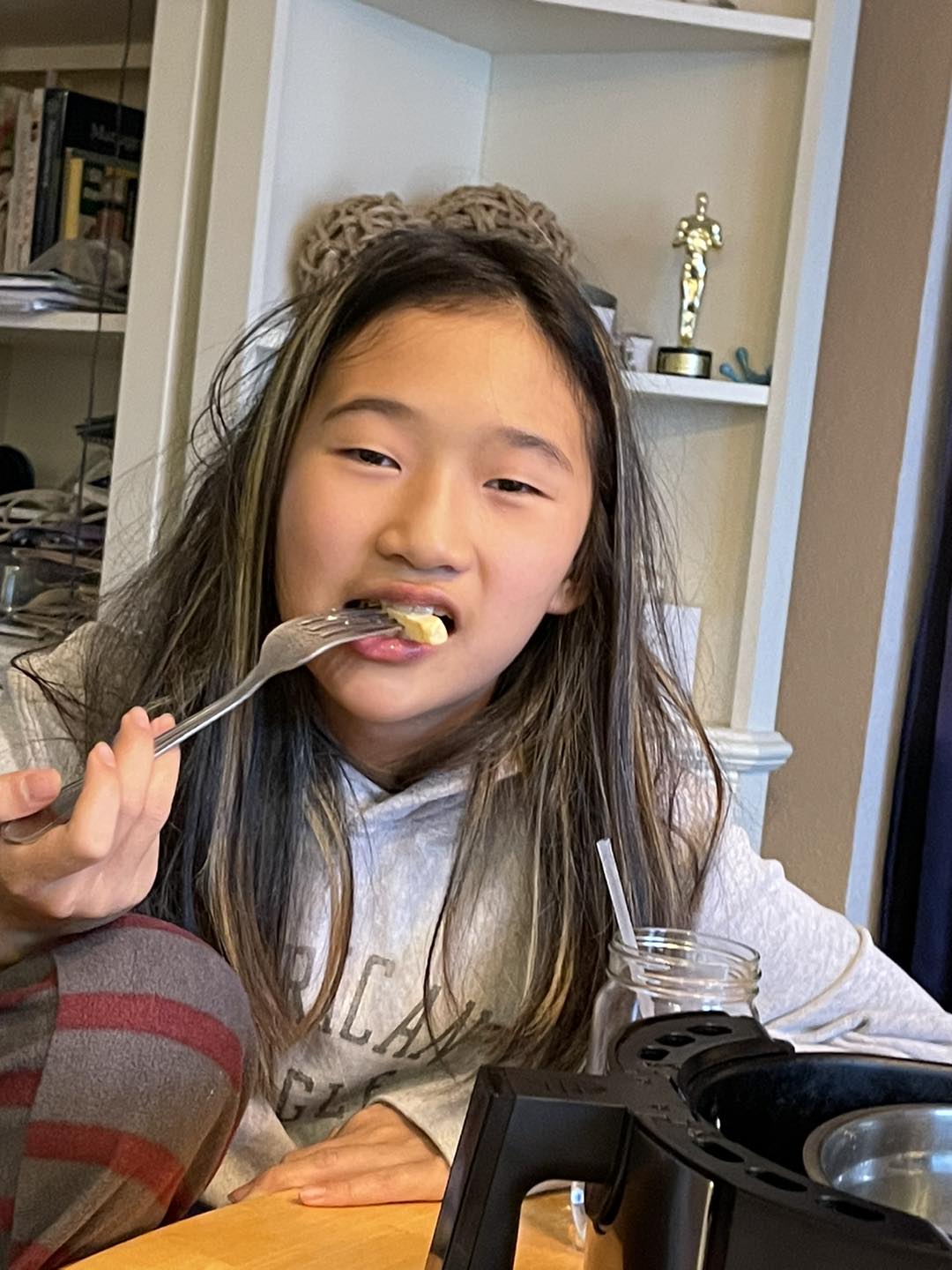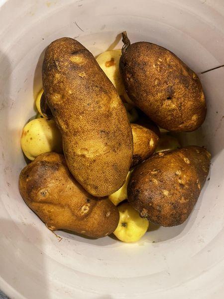 所以,我就把後院剛採收大馬鈴薯做成氣炸薯條給她吃。