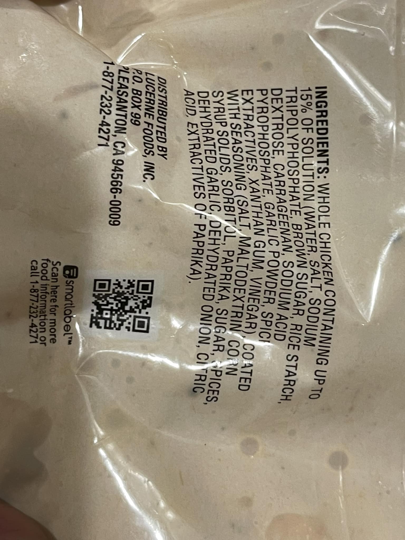 我事後一看,我的媽呀!烤雞就烤雞,為什麼要添加那麼多雜七雜八的化學物質啊!