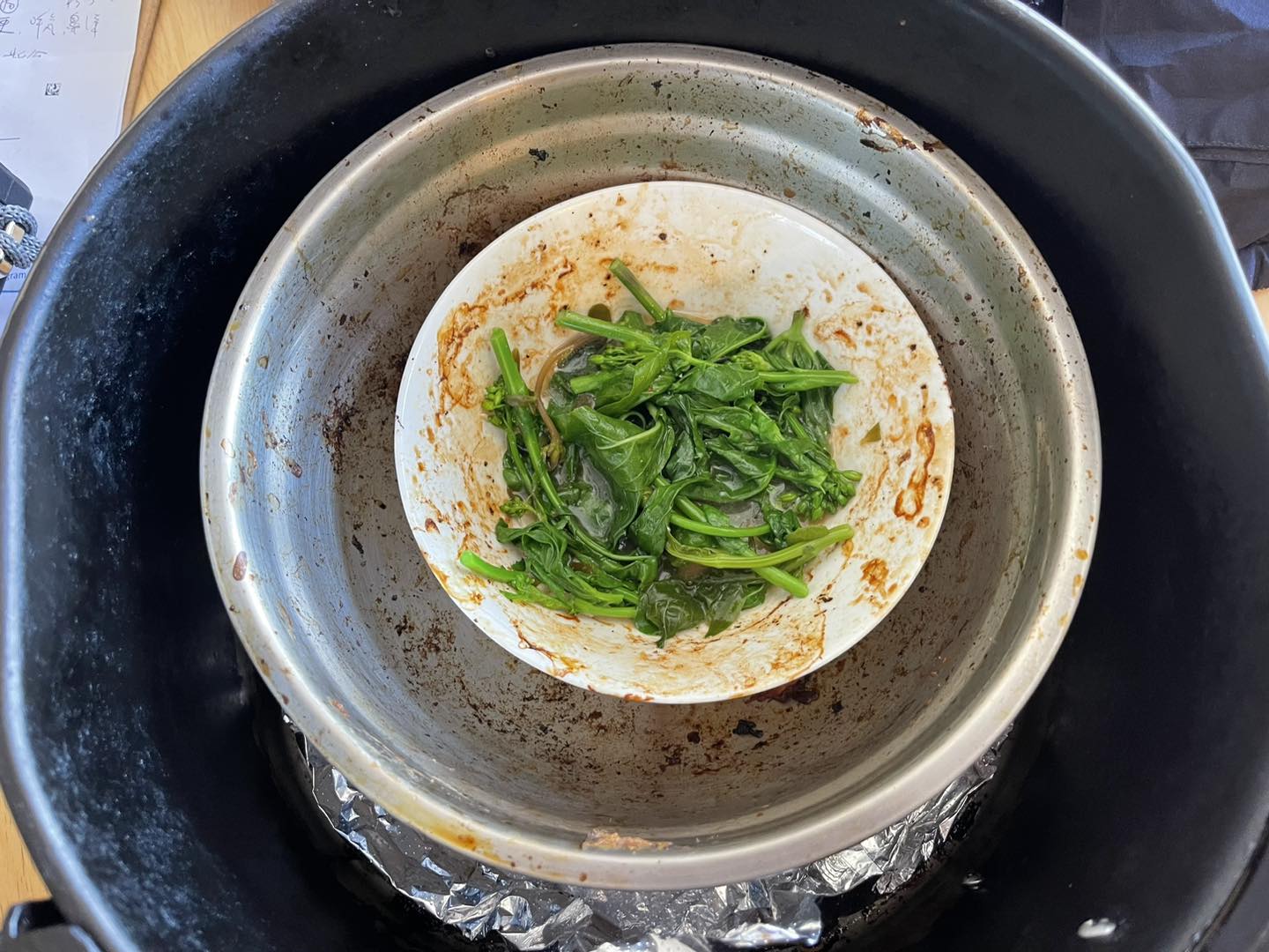 首先,把馬齒莧沖洗乾淨,剪掉根部,放入事先熔好一大塊奶油的沸水中,大概20秒就可以撈起。