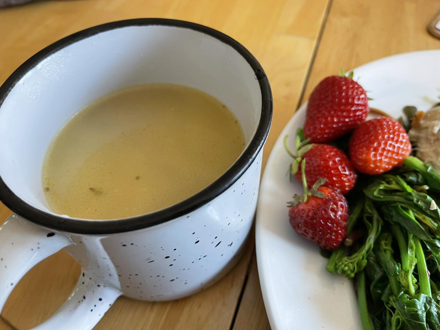 那個奶油湯,也別浪費。我把它倒在杯裡,喝起來有點類似西藏酥油茶的樣子。香香鹹鹹的,喜歡和酥油茶的人應該也會喜歡,重點是健康、環保、簡便。