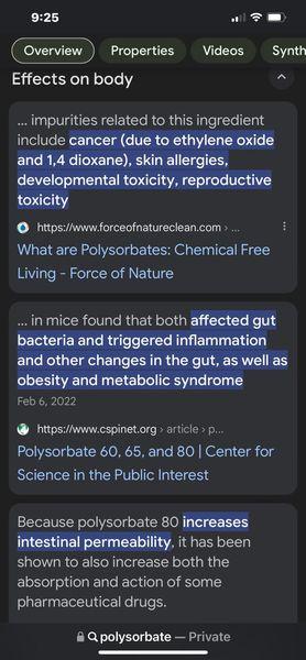 上網查一下,發現這個乳化劑會干擾腸道菌叢、引起腸漏、皮膚過敏、誘發發炎、癌症、生長性毒性、生殖性毒性、代謝性疾病、、、等等。