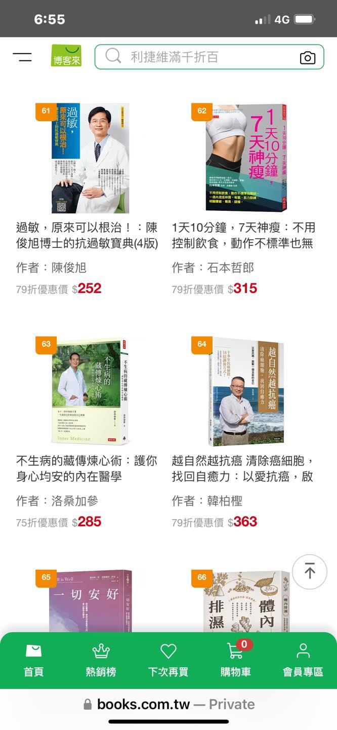 六本同時在暢銷榜裡 08/01/2024 09/22/2024 六本同時在暢銷榜裡 前天和康健出版社的總編見面,瞭解一下「更新粒線體,根治慢性病」這本新書的銷售狀況。總編說這本書銷售得非常好,而且她說暢銷榜裡曾經同時有我的八本著作在裡面。 這是以前沒聽過的現象。剛上網查了一下,果真如此,今天看到有六本書。真是感謝讀者的大力支持! 轉載自:【陳俊旭 美國自然醫學博士】Facebook 瀏覽人次: 454