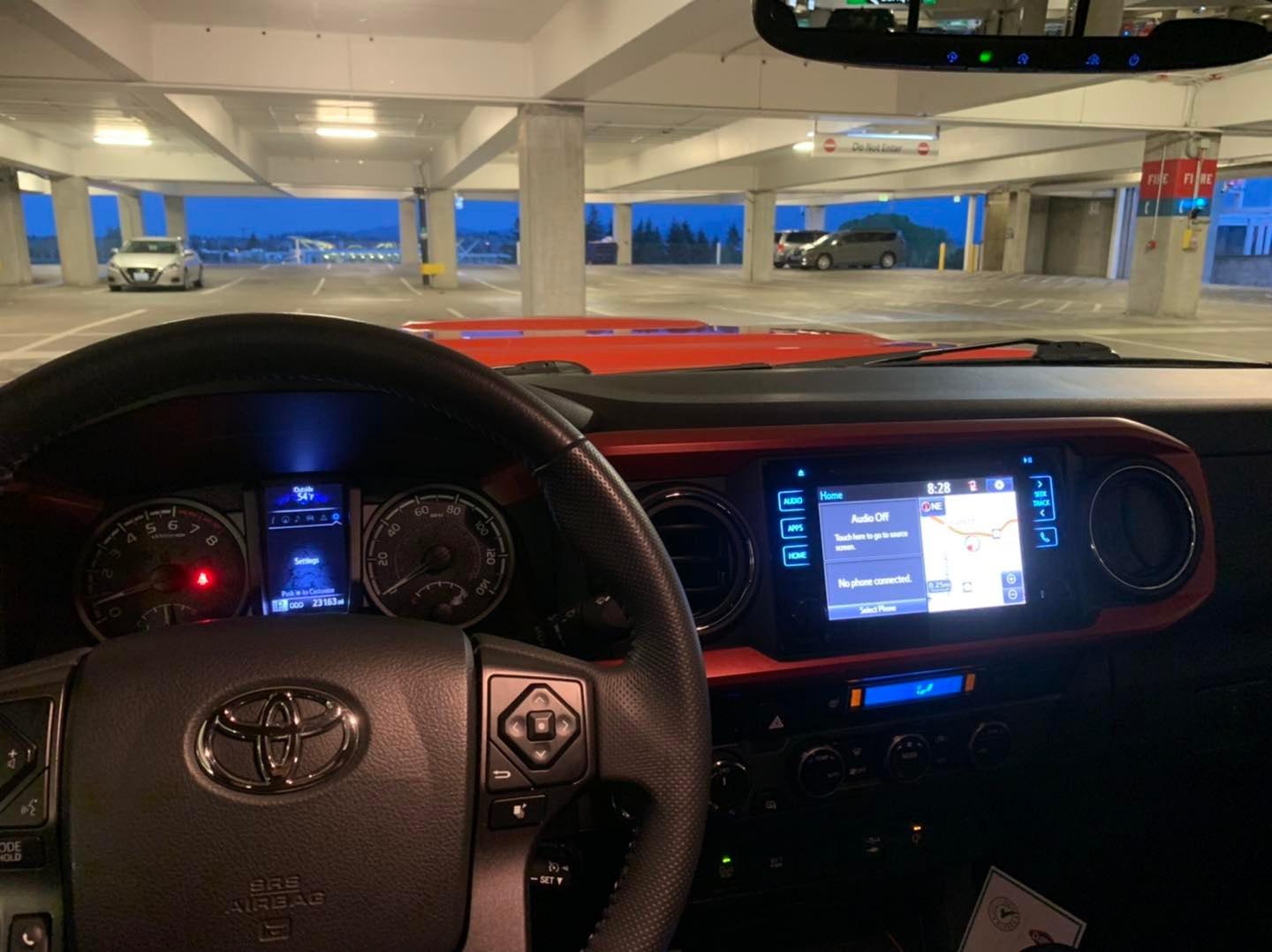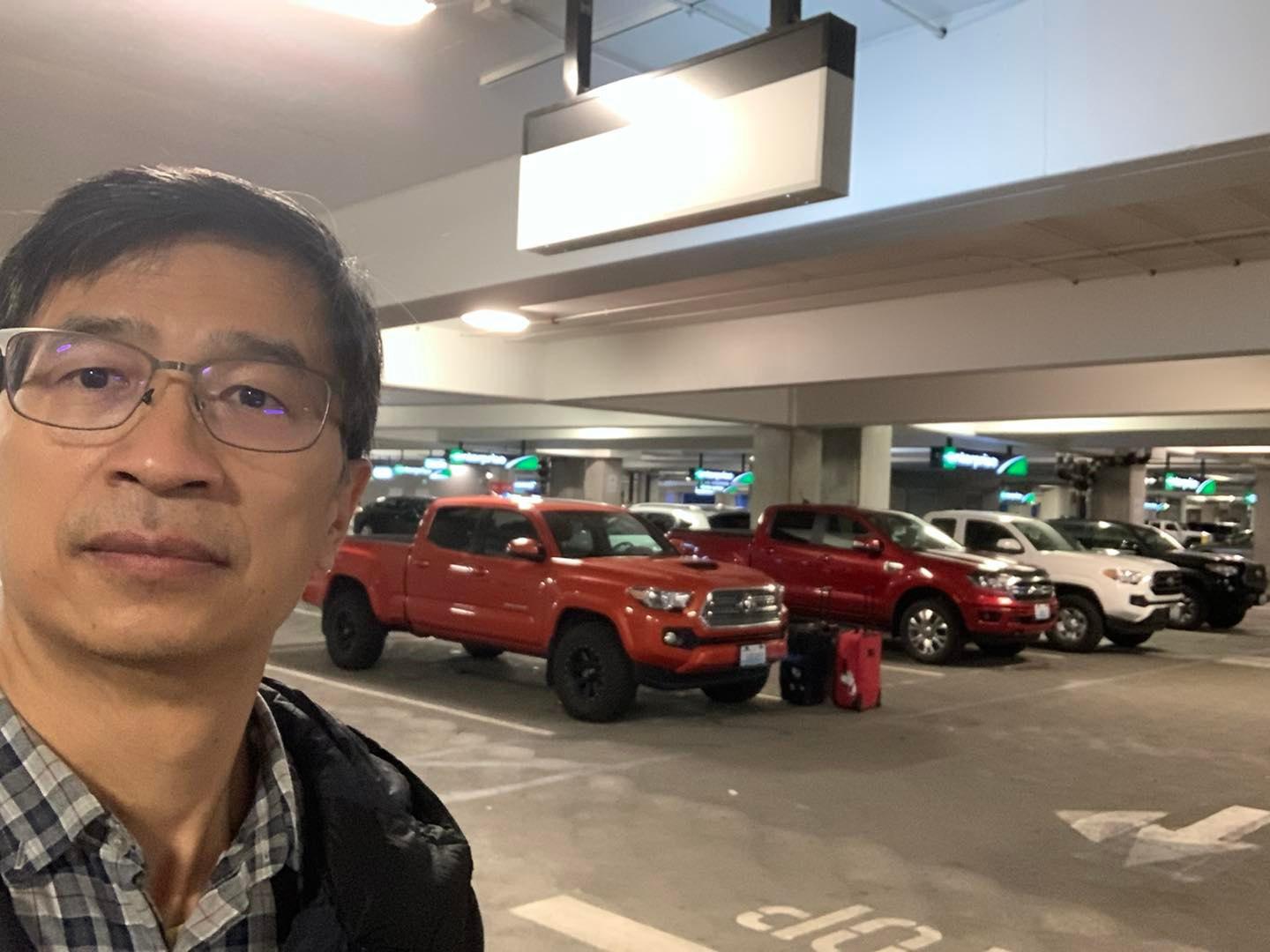 出關後,坐接駁車去租車,其實是用點數換的。我從四輛皮卡中挑了一輛,不是因為喜歡它的顏色,而是從來沒開過Toyota 的皮卡,給它試試看。果然是Toyota 的風格,不像美國皮卡那麼有力,但耐開省油。