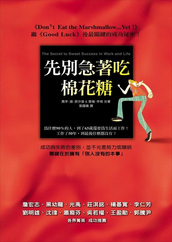 這本書基於一個史丹佛大學做的實驗:給四歲小孩一顆棉花糖,告訴他們,如果可以忍受15分鐘不吃,等實驗人員回來後,會再多給他一顆。