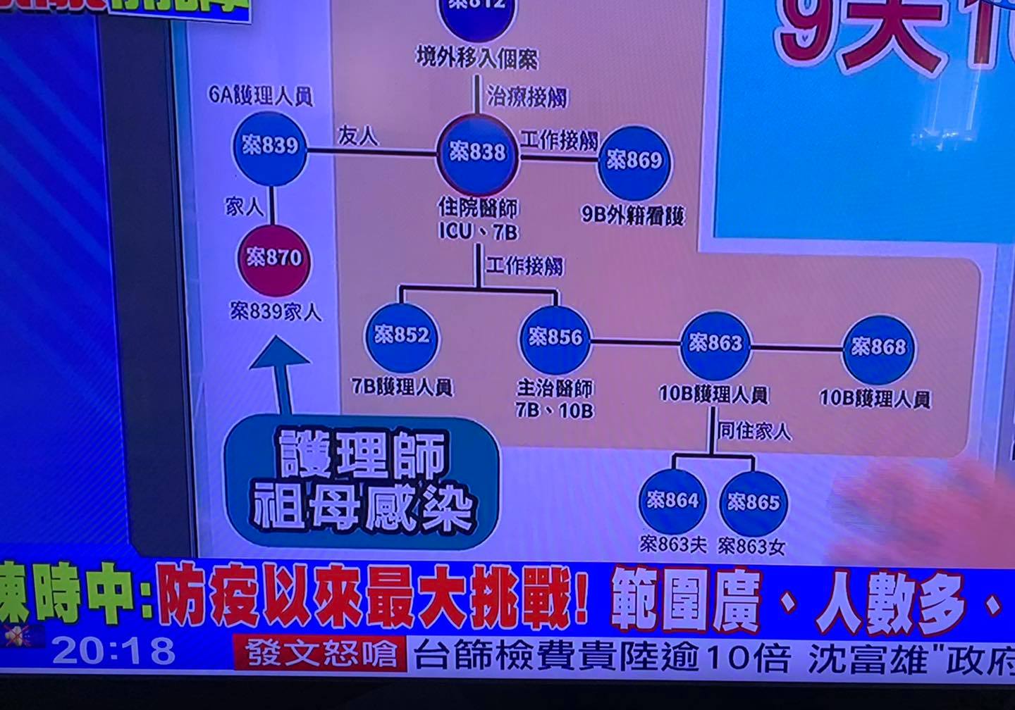 案839護理師已經把病毒傳給她祖母了!案869是看護,她們有她們自己的圈子,這樣算不算已經把病毒帶入社區?甚至,案864有到101上班,會不會已把病毒帶到台北了?