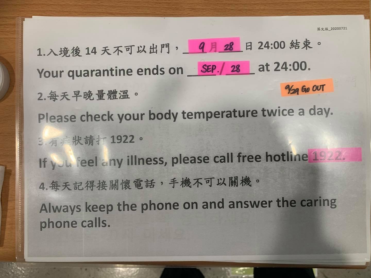 昨晚抵達桃園機場,因為事先在美國就已經線上申報,而且我有台灣的手機門號,所以到機場很快就根據衛福部給我的簡訊通關,防疫人員給我三十秒的教學後,就讓我出關了!