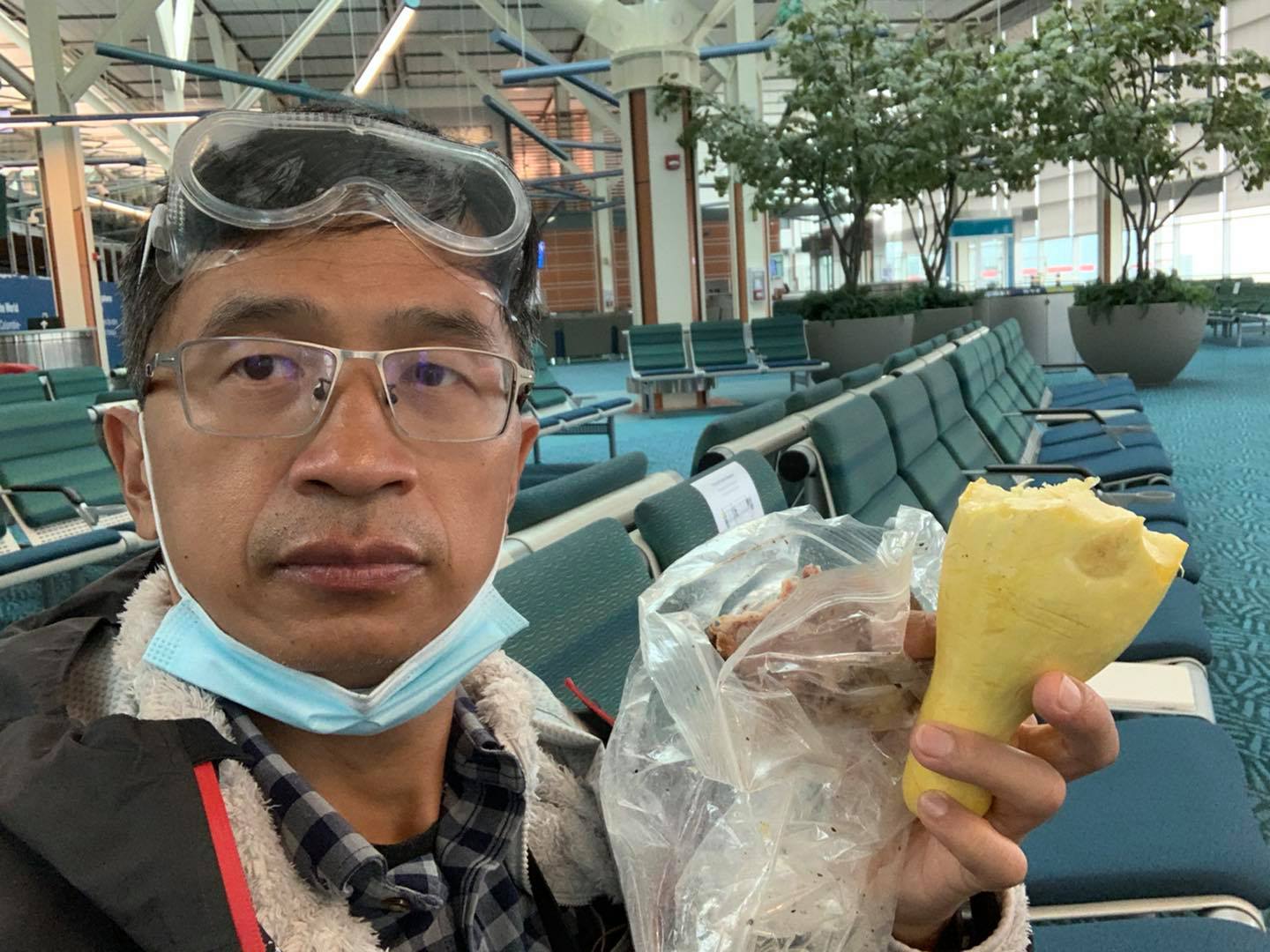 在溫哥華轉機時,找個沒人的地方,吃起我的午餐了!等一下上機就要睡覺了!