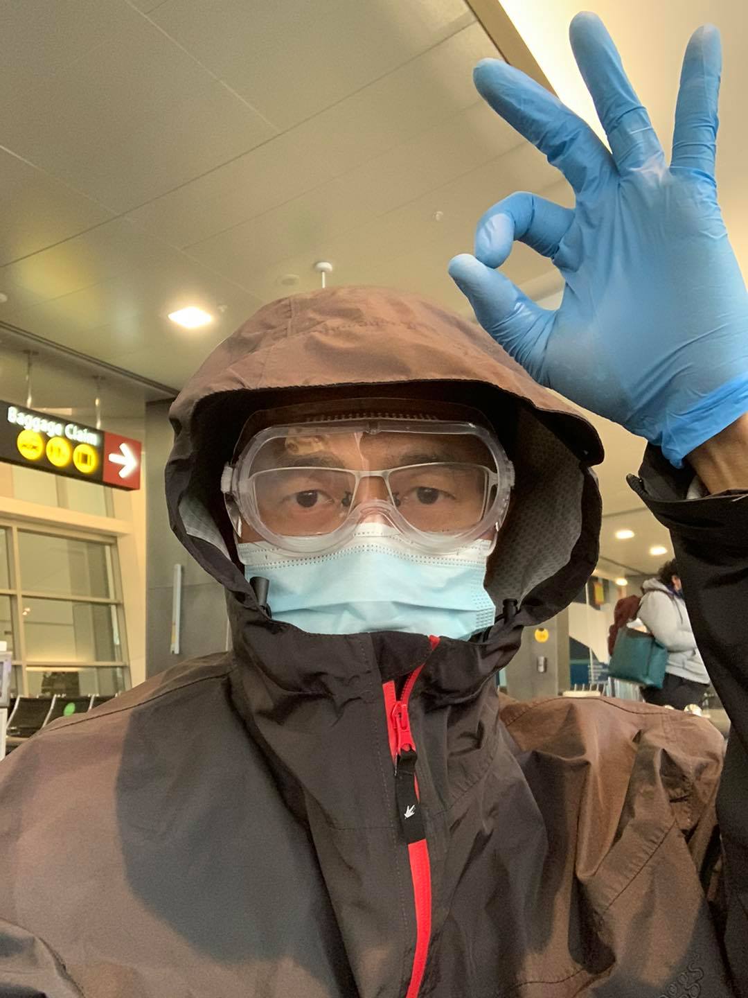 所以,眼罩、口罩、頭套、風衣,全派上用場了!只有N95口罩還沒拿出來。