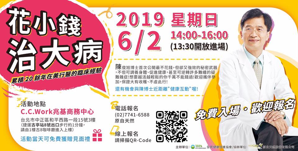 大家好,我在6/2有一場全新主題的演講,會首度公開我在美國看診的秘密武器,有些甚至不花半毛錢,但效果宏大,想要身體更健康的人不要錯過喔!