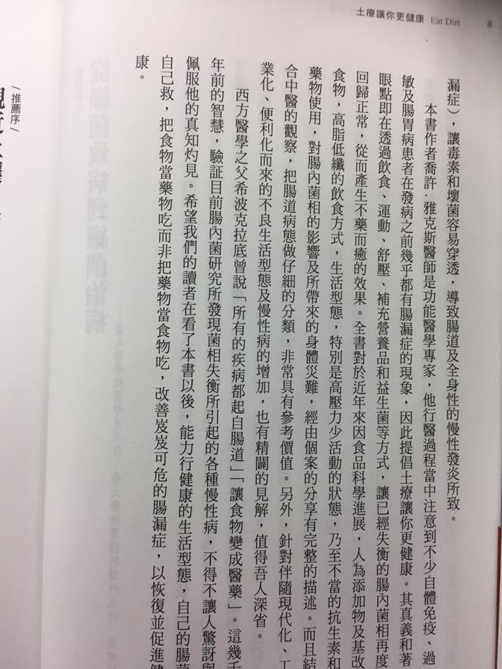 期待多年的書終於出現了 02/17/2017 06/28/2022 期待多年的書終於出現了,但可能會顛覆很多人的認知。 這本書我有寫推薦序,也很高興母校的醫學系系主任也寫了推薦序,而且還是本書的審訂者。 這表示連主流西醫都已經對腸道開始有正確的認識了,真好!我們真的要對「抗生素與農藥的濫用」提高警覺,也要對「菌叢平衡」持續關注,因為破壞菌叢所造成的傷害,遍及全身,超過你我的想像! 轉載自:【陳俊旭 美國自然醫學博士】Facebook 瀏覽人次: 492